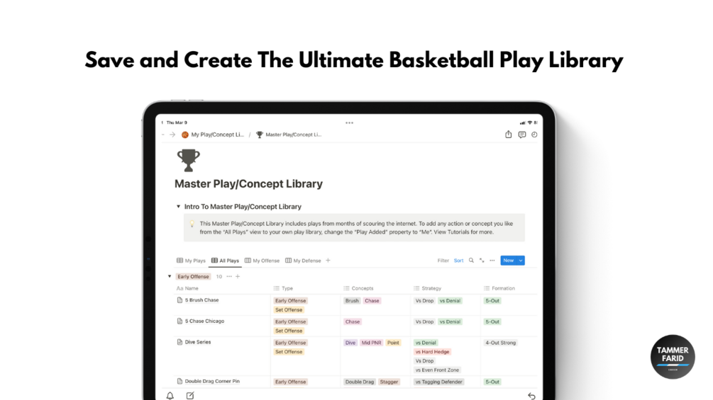 Note: The main template uses a free web and mobile-based software called Notion. In order to gain full access to all the features you must create a Free Notion account. I encourage you signup for your account before downloading the template. I also offer a more limited Google Sheets version of the pre-made play/concept library.