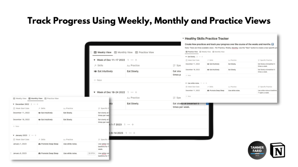 A Healthy Skills Practice Tracker Notion template with over 65+ practices and 15+ Skills to create a healthier you.